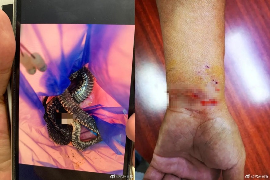 ▲狗被毒蛇咬傷,男子又被狗咬,居然這樣中蛇毒。(圖/翻攝自微博/杭州日報)