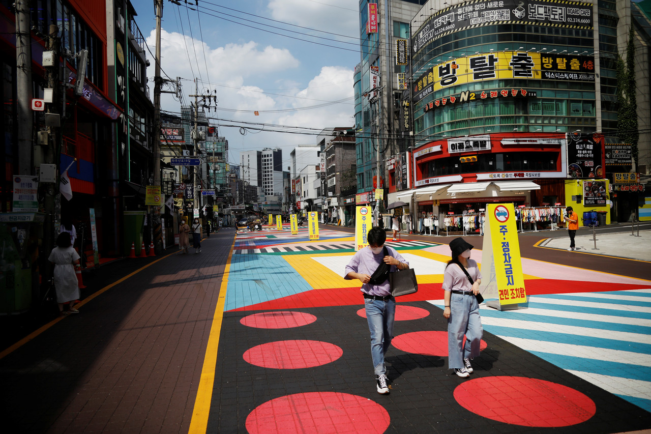 ▲南韓首都圈持續傳出群聚感染疫情,首爾商圈顯得空蕩蕩。(圖/路透社)
