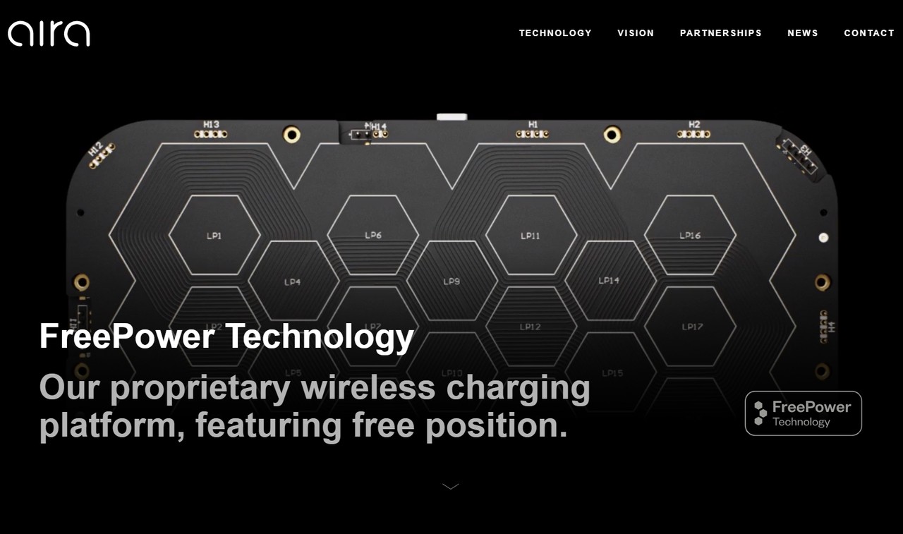無線充電的基本原理是透過線圈之間產生的磁場傳輸電能,當設備與無線充電板內的線圈對準時,即可開始充電。目前市面上的多設備無線充電大多會在充電板上方做出標記,以提醒用戶線圈位置。而 Aira 的 FreePower 技術與上述不同,其採用印刷电路板上的薄線圈來替代需精準放置的繞線線圈。