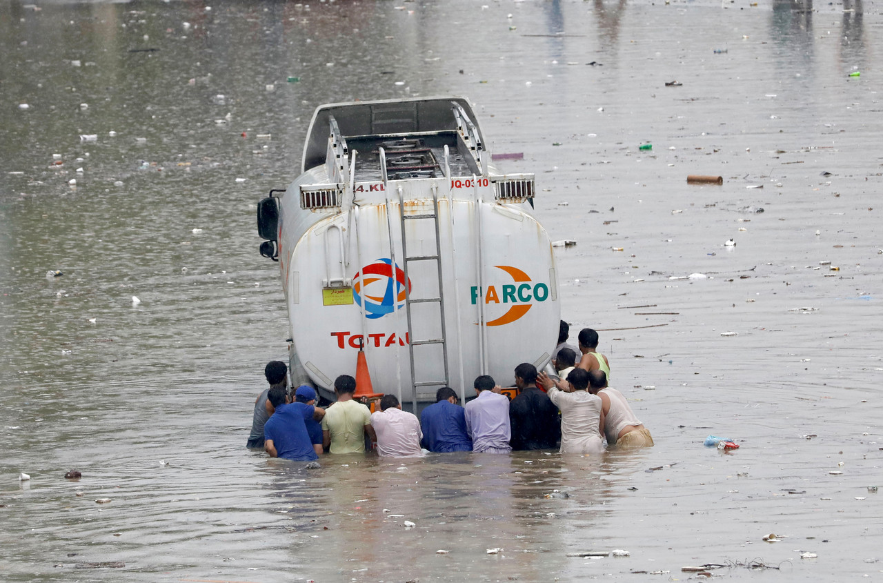 強勁的西南季風連續三天為巴基斯坦各地帶來豪雨,引起的洪災已經導致超過90人死亡、逾1000棟房屋被毀。尤其一場暴雨襲擊了港口城市喀拉蚩(Karachi),讓整座城市的街道徹底淹沒在泥水中。