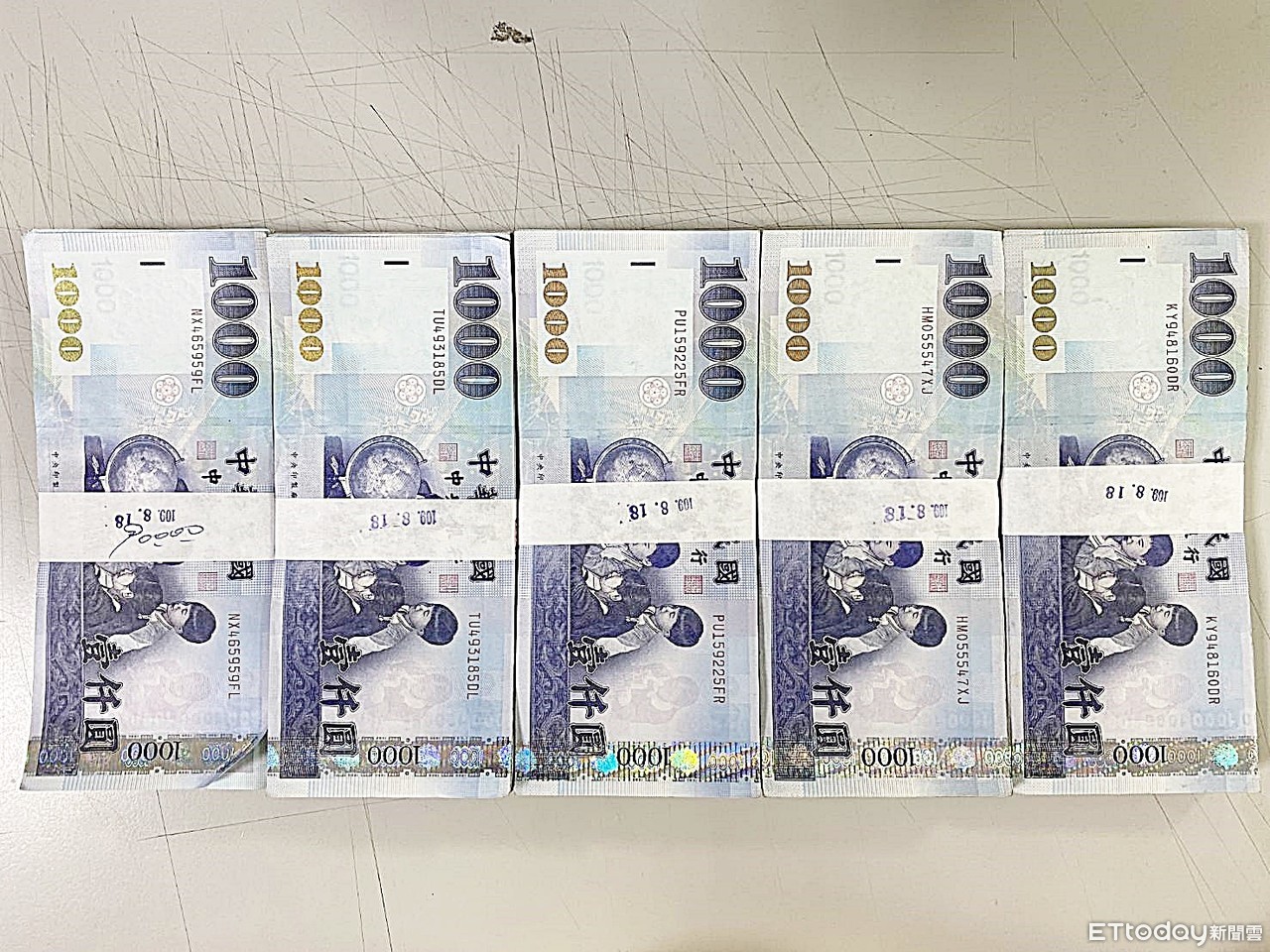 ▲桃園市姚姓男子25日傍晚二度要謝姓被害人交款時人贓俱獲,警方起出49萬元贓款。(圖/記者沈繼昌翻攝)