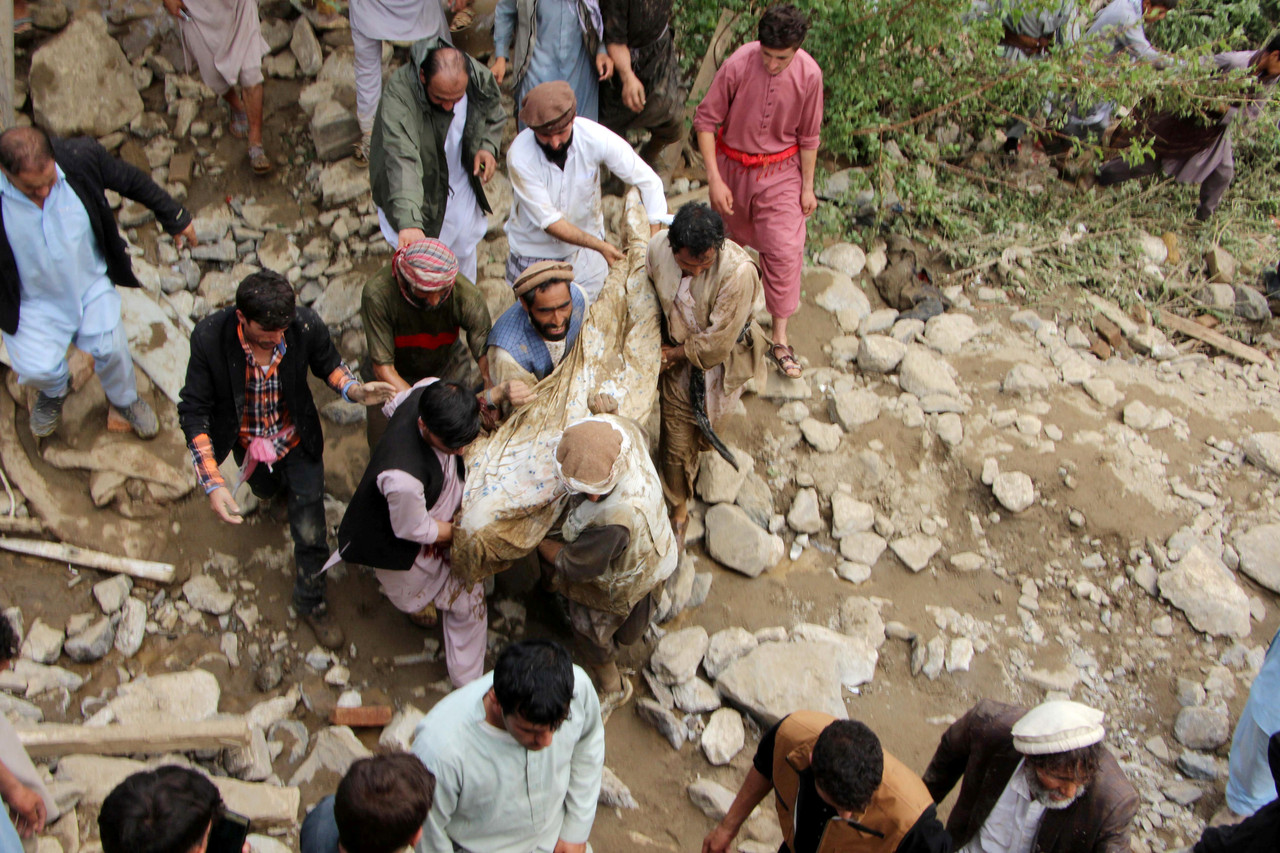 軍方救難人員從巴萬省(Parwan)首府查里喀爾市(Charikar)倒塌建築物的瓦礫堆中,拉出數十名受害人。當地昨晚的暴雨,助長猛烈洪水侵襲這座城市。