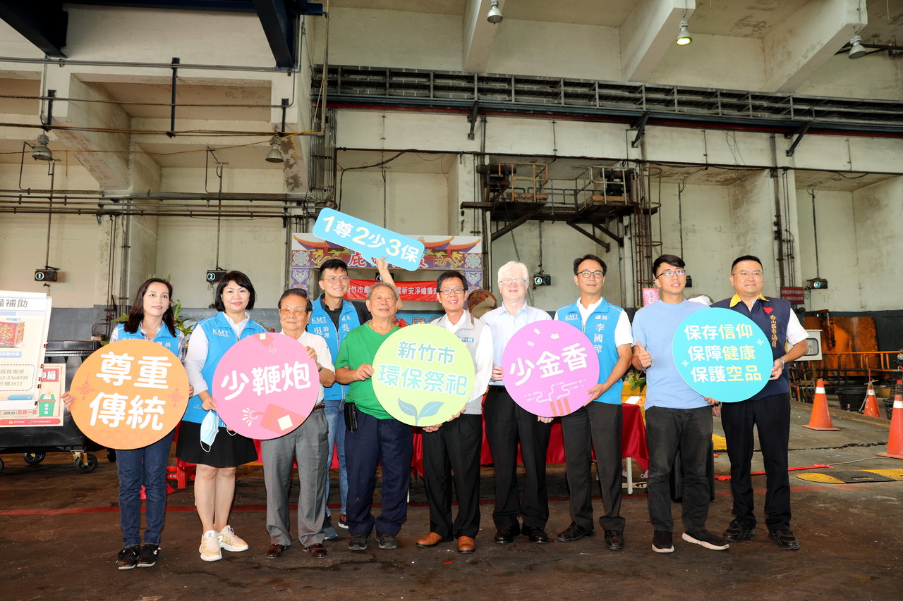 今天儀式由環保局長江盛任開香主祭,他表示,環保局連續4年推出結合中元祭祀用品及減量香紙的組合式「環保祭祀袋」,可在祭祀與環保之間找到平衡點,避免誠心祭祀增加環境負荷。祭祀袋內裝有基本祭品包括大面額紙錢、平安米、減量香支、毛巾、普渡旗、中元普渡疏文等,新竹市展現設計力與創意,逐年升級豐富祭祀袋,去(108)年每袋加碼提供低碳寺廟加持過的平安護符,讓民眾可以「環保做功德,護符佑身家」,今(109)年祭祀袋新增兩個環保亮點,第一個是把大面額紙錢與平安米二合一,變身為紙錢包米的「紙錢造型平安米」,第二個是祭祀用品包裝袋由紙袋改良為可重複使用的購物袋。