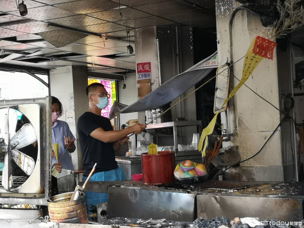 ▲豆漿店被燒成焦黑。(圖/記者唐詠絮攝)
