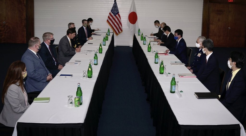 ▲美日防長達成共識,反對改變東海、南海現狀。(圖/取自Dr. Mark T. Esper推特)