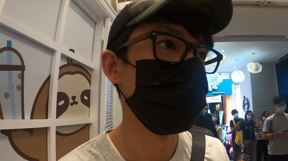 ▲阿滴排了20分鐘左右拿到飲料。(圖/翻攝自YouTube/阿滴日常)
