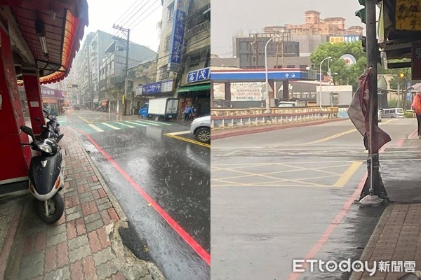網友唐定瑋拍下照片後,立刻在「汐止集團」發文分享,直呼「汐萬路方向地乾,大同路方向大暴雨,同一時間拍攝,打字完畢...暴雨往山裡走了。我在早餐店目睹雨從左至右下,還以為樓上惡作劇。」