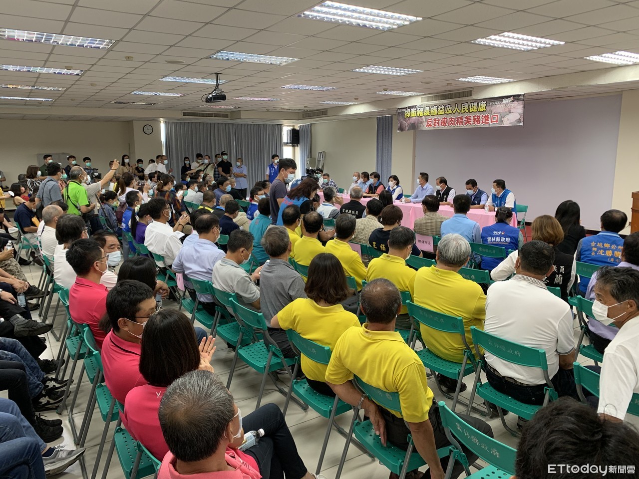 ▲中國國民黨雲林縣議會黨團與雲林縣政府今日舉辦「拒絕瘦肉精豬肉、捍衛全民健康」反對開放含瘦肉精豬肉記者會。雲林縣200多位豬農、從業人員到縣府陳情。(圖/記者蔡佩旻攝)