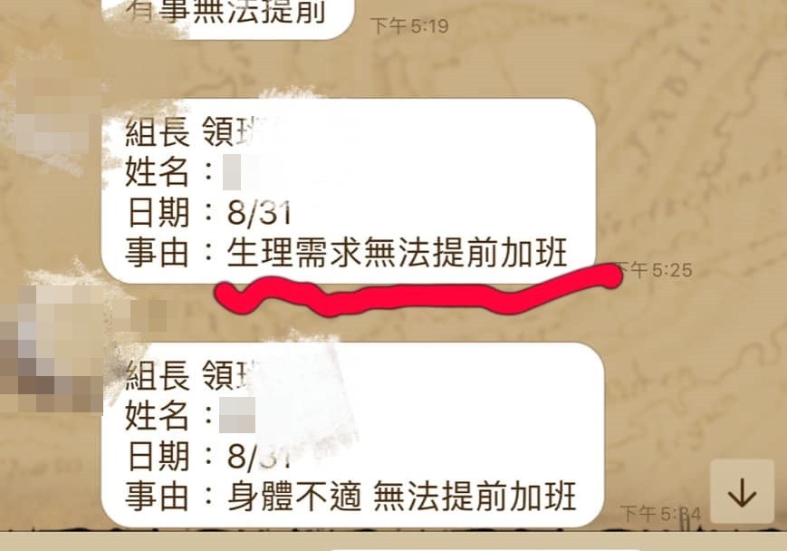 「公司有暑假短期工,大學生來工讀,今天最後一天上班」,結果有男大生不打算提前加班賺外快,就在群組裡面回報、附上事由。這位男網友貼出群組訊息截圖,只見男大生寫下事由「生理需求無法提前加班」。