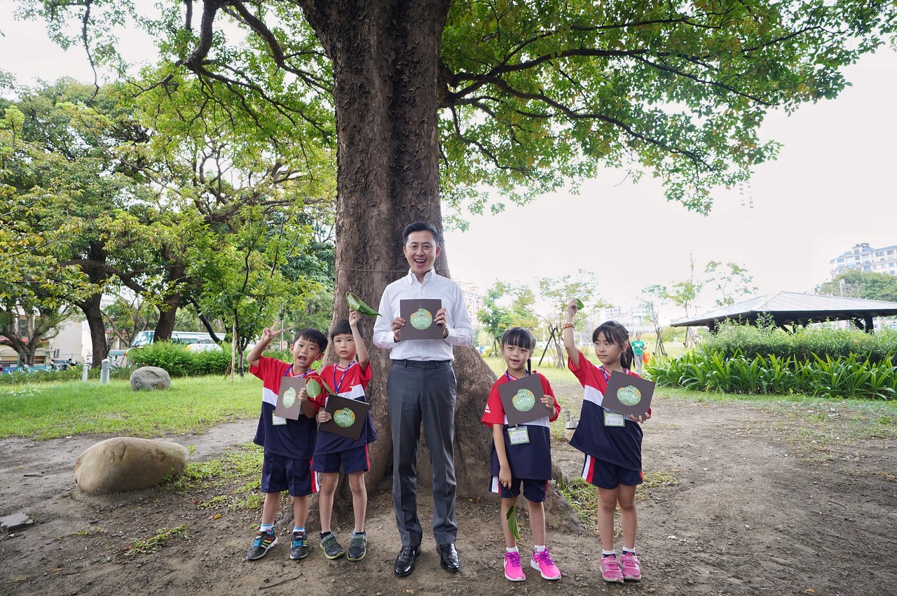 「哇!茄苳樹上還有哪些小秘密呢?」教育處表示,以昆蟲老師為諧音取名臉書名稱的「昆蟲擾西」吳沁婕,除了是台大昆蟲系畢業的高材生,更是曾獲金鐘獎的《台灣特有種》節目主持人,可說是小朋友界的網紅,他與樹藝師林芳聿、陳鴻楷,一起和林智堅陪伴小一新鮮人展開戶外植物課,孩子們看到昆蟲專家分享樹上的鳥巢、皇蛾標本及皇蛾幼蟲、獨角仙,更是驚喜的抬頭四處張望尋找著來自大樹上的小驚喜。