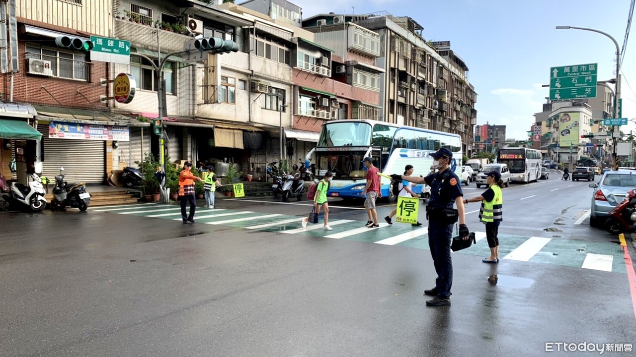 ▲ 開學日!金山警啟動「護童專案」,貼心指揮守護學童上下學安全。(圖/記者郭世賢翻攝)