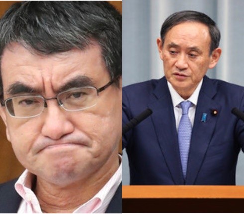 ▲日本防衛大臣河野太郎(左)、官房長官菅義偉(右)。(圖/達志影像/美聯社)