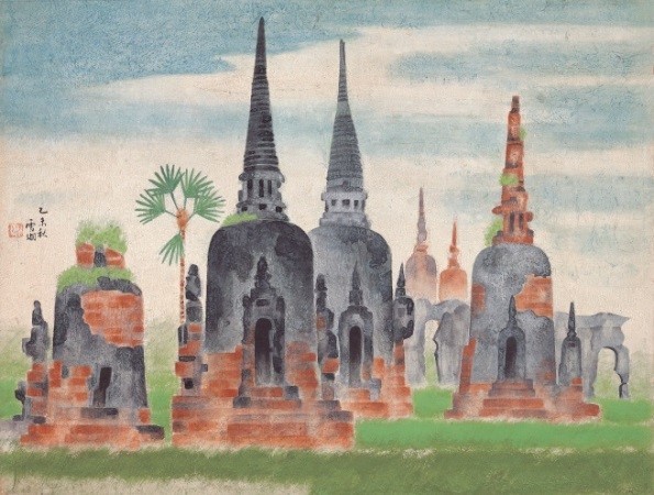 ▲郭雪湖,臺灣,〈大城遺跡(泰國)〉,1955,膠彩、紙,67 × 68公分,郭雪湖家族收藏,臺北市立美術館提供。