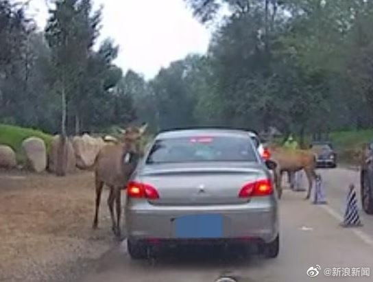 一段餵食動物的影片在網路瘋傳,畫面中一隻動物將頭伸進一輛銀灰色的小轎車中,隨後叼出一個藍色口罩並咀嚼起來,車窗中隨即伸出一隻手試圖拿回口罩,卻沒能成功。眼看動物要將口罩吞下,兩名工作人員及時趕到,從動物口中搶回了口罩,並揮手示意讓該遊客駕車前行。