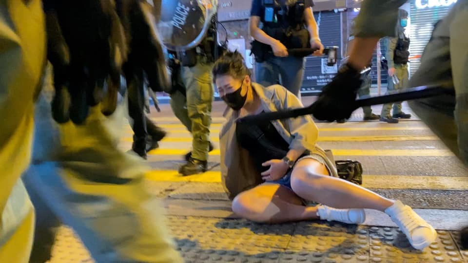 綜合港媒報導,港警晚間在亞皆老街截查市民時,在混亂中一名孕婦倒在路中安全島上,表情相當痛苦,抱著肚子痛哭,而她的老公見狀情緒激動大罵警方,因此吸引更多警力前來支援,要制服孕婦老公。
