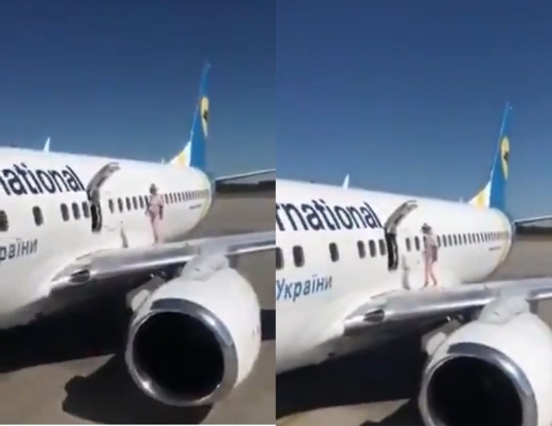 烏克蘭航空一架班機近來順利抵達基輔機場,沒想到飛機才剛降落,一名女乘客竟然直接打開機艙門跑到機翼上散步,誇張行徑引發機場工作人員高度戒備,立即派來警車與救護車到場,然而她的理由竟然是因為嫌飛機上太熱,才會直接開門「透透氣」。