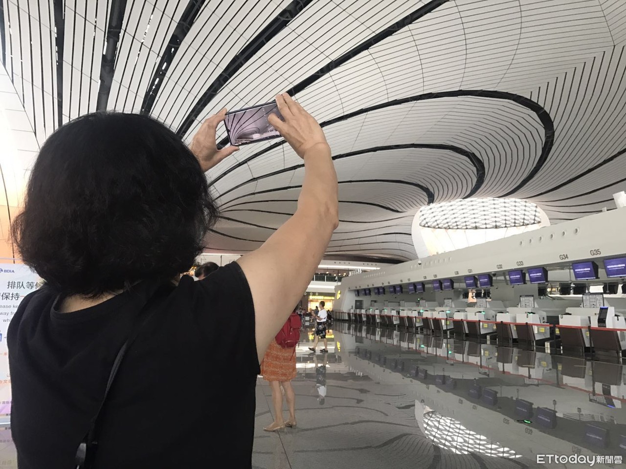 ▲北京大興機場設計新穎,成為熱門打卡點。(圖/記者任以芳攝)