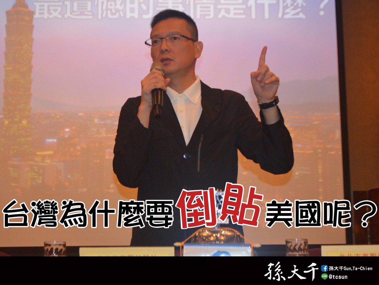 孫大千指出,蔡英文政府原本用畫大餅的手法來唬弄台灣人民,一下子說要簽台美自由貿易協定,一下子說可以加入CPTPP,一下子說可以換一個國際地位,最後擔心謊言拆穿東窗事發,乾脆改口說完全沒有交換。
