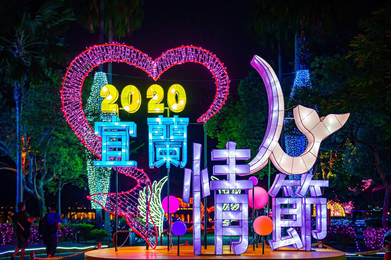▲▼蘭龍潭湖情人節燈飾全區,6日因風勢過大,暫停亮燈1天。(圖/翻攝自宜蘭縣長林姿妙臉書專頁,下同)