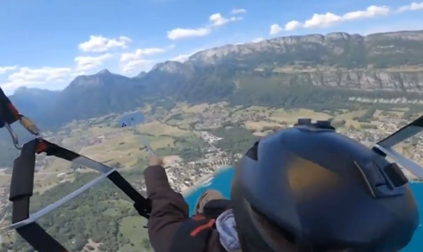 外國一名女子先前到法國阿爾卑斯山挑戰飛行傘,就在她翱翔於天際時,一手同時拿著一支架有iPhone 11 Pro的自拍棒,想將這個難得的體驗紀錄下來,沒想到就在她到達5000英尺(約1.5公里)高度時,想換隻手攝影卻一時手滑,手機連著自拍棒就這樣向下墜落,在大家的視線中成為一個小點…悲劇的落入下方的湖中。