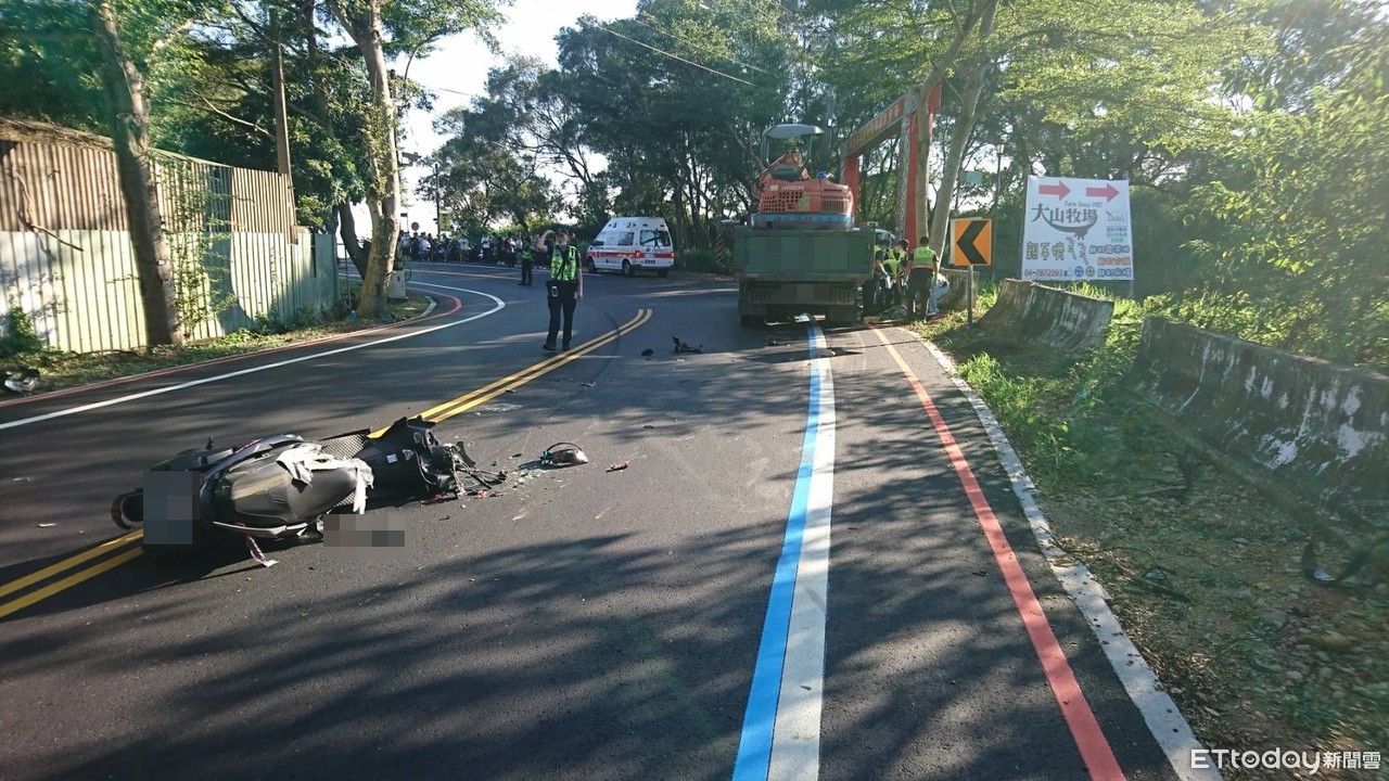 彰化芬園鄉6日下午發生一起死亡車禍!一名20歲莊姓男子騎乘重機沿大彰路往彰化方向行駛途中,過彎不慎自摔滑往對向車道,當場遭對向大貨車輾過,經緊急送醫搶救仍不治身亡。