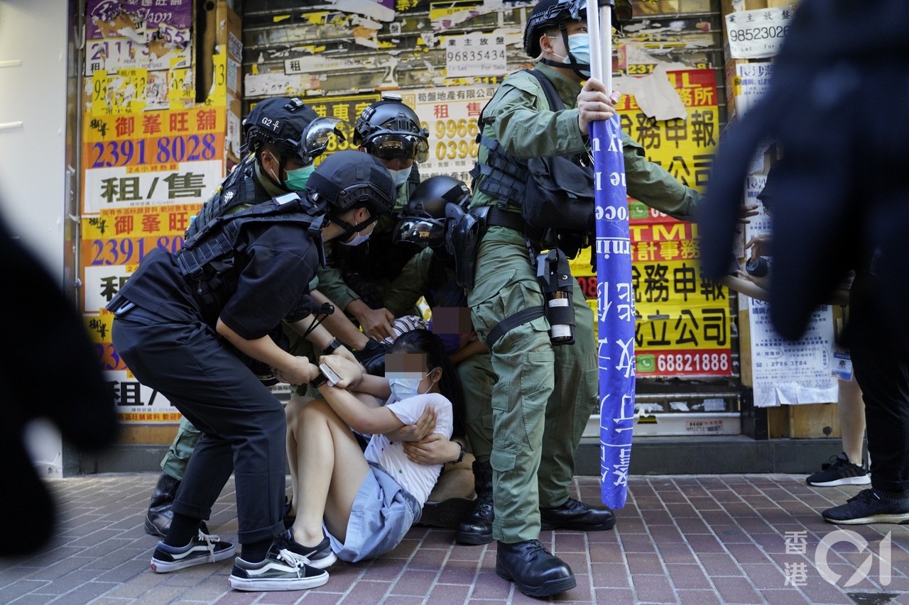 據記者現場目擊,下午4時許警方在西洋菜南街一帶執勤,並截停搜查在該處聚集的人士。未幾,警員向在場一名12歲少女指,要求截查她,該名少女未知是否受驚,突然向反方向逃跑。及後她被包抄的防暴警撲倒地上,並一度坐在其身上,其兄長曾嘗試走近上前拉住少女,惟不成功一同被捕。其後在場人士鼓譟不滿,並指罵在場警員。