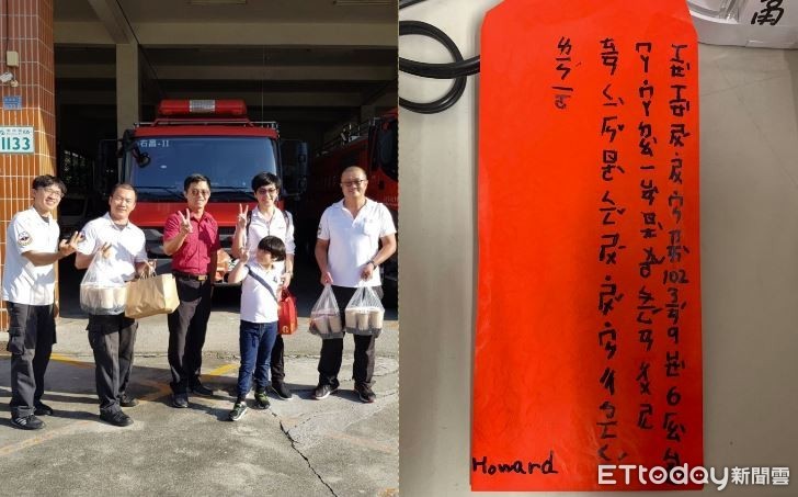 男童爸爸也說,「昨日經過消防隊,兒子看到消防人員於大太陽下訓練的樣子,提議要請辛苦的消防叔叔吃冰淇淋。回到家後,兒子拿出平常存下的零用錢裝入紅包袋並親手寫上慰問語,並至右昌分隊欲將紅包轉交消防人員以示慰問之意。」