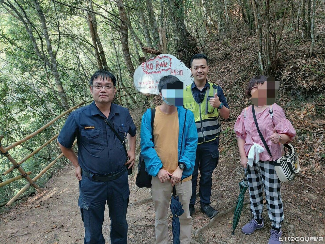 母子表示第1次來司庫因不熟悉地形而迷路,原來他們是沿著狩獵路徑往山谷走,途經分岔路口後才選擇陡峭的直接下切方式,共迷失了約3公里路程,倖賴警方哨音提醒後以大聲呼救回應脫險,非常感謝雙警的及時救援,沿路頻頻向警方救援人員道謝。