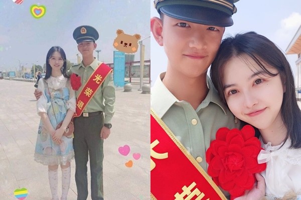 這張照片近期在大陸社交媒體上不斷被轉傳,準備退役的解放軍士兵與超正「伴侶」合照,行為舉止看起來十分甜蜜,「伴侶」身上的仙氣也令人著迷。