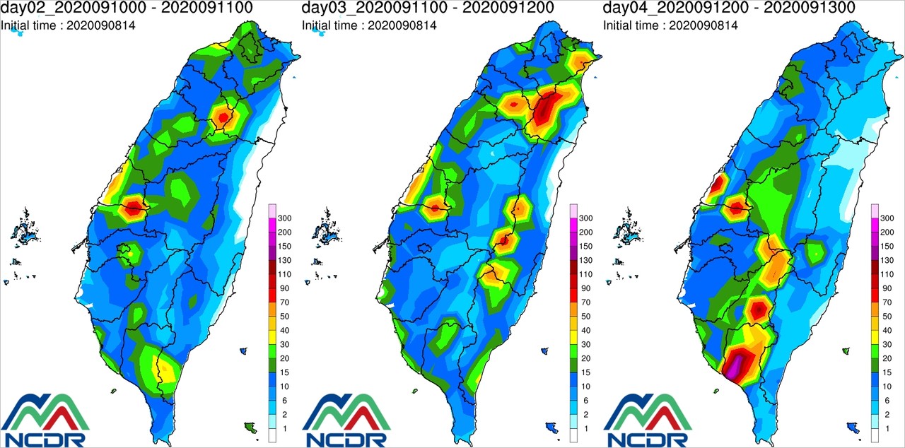 預計入秋第一道微弱鋒面將於10日之後形成,並通過影響台灣,水氣增加、降雨範圍區域擴大,氣象局指出,北部跟東半部有局部短暫陣雨或雷雨,其他地區多雲、午後有局部短暫雷陣雨,各地都有局部較大雨勢,中南部清晨也有零星短暫陣雨。