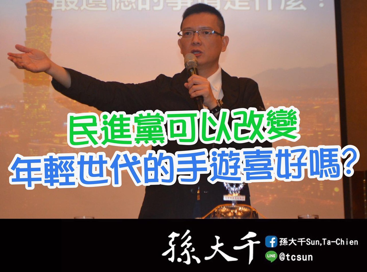 孫大千認為,年輕世代所熱衷的手遊,不管是《三國群英傳》或者是《金庸群俠傳》,都是以中國的歷史文化為背景,民進黨可以把歷史課本中的中國歷史全部刪除,卻無法改變年輕世代的手遊喜好。