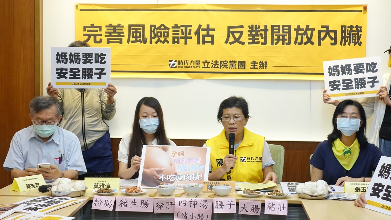 對此,時代力量立法院黨團9日上午召開「完善風險評估,反對開放內臟」記者會,陳椒華表示,國人有食用內臟習慣,不應開放含瘦肉精內臟進口,以免影響食安及增加敏感族群風險,呼籲健康風險評估須針對敏感族群如哺乳婦女、懷孕婦女、母乳寶寶、心血管高危險族群進一步研究,包括動物殘留實驗和族群評估提出科學實證。