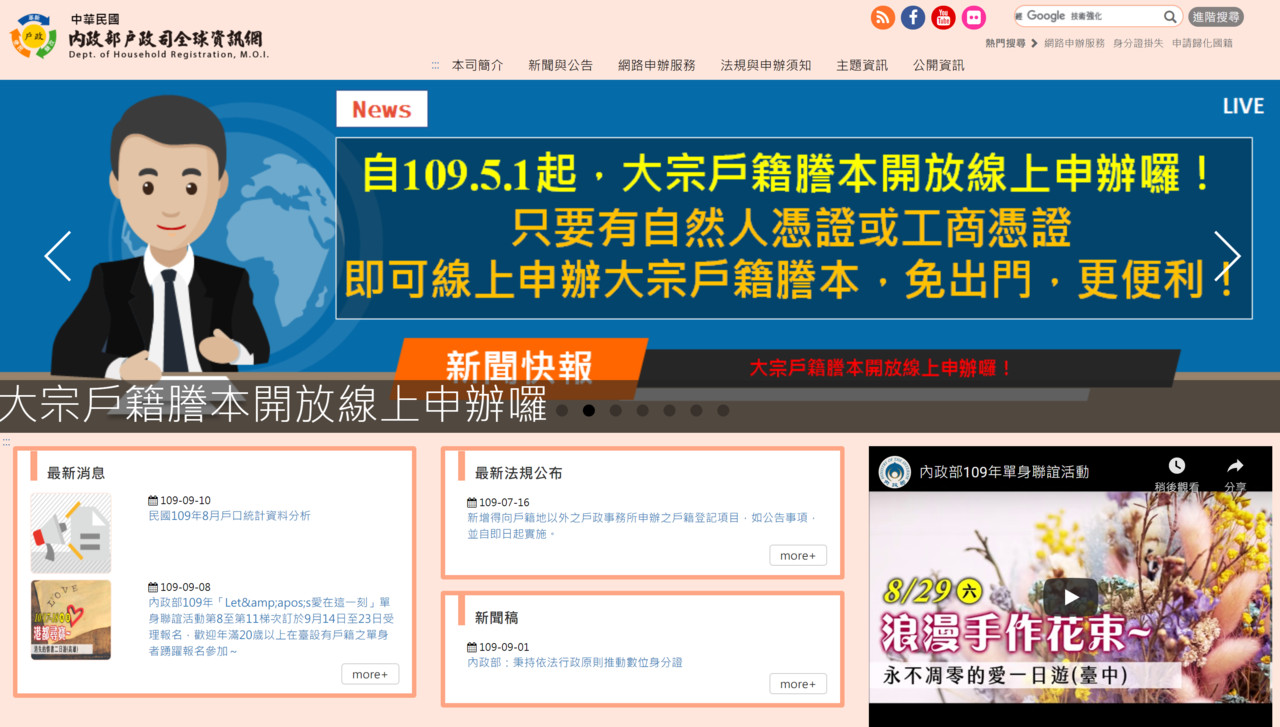 ▲內政部戶政系統當機。(圖/取自內政部戶政司官網)