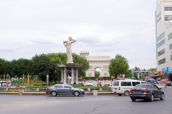 感覺像是來到中東,但進到哈密市中心卻感覺好像到了歐洲!圓環旁的公園矗立了一座白色的拱門,怎麼看都像是巴黎凱旋門的山寨版,讓人對於這個城市的多元更是映象深刻阿!