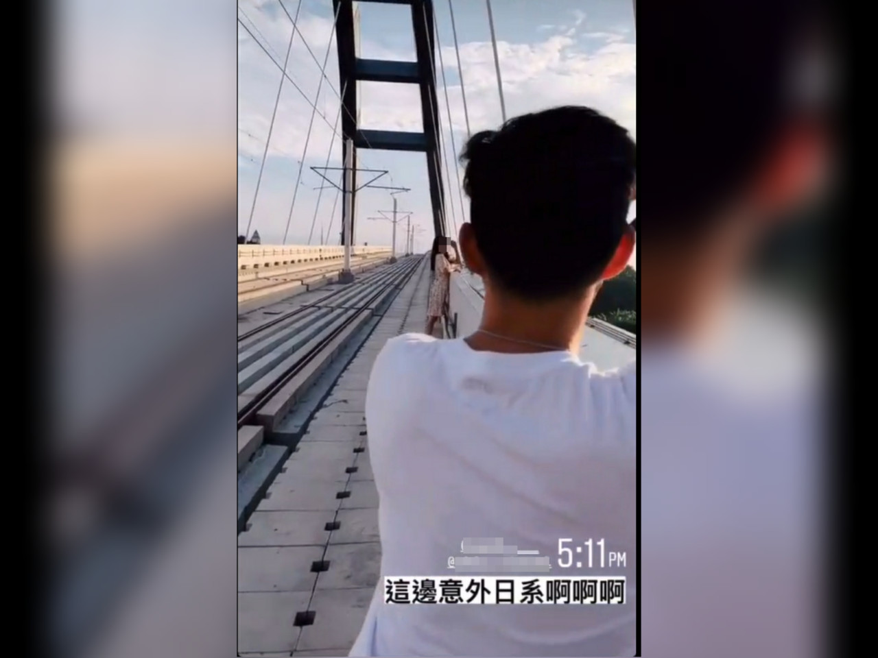▲自稱散步系攝影師的李男帶小模闖入淡海輕軌未開放的藍海橋軌道內外拍。(圖/翻攝自當事人Instagram)
