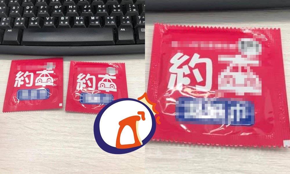 這位男網友在臉書《爆怨公社》貼出一張照片,「買便當附這個,我差點就順手丟到包包裡面」。看看照片,只見他在鍵盤旁邊放了2包扁扁的東西,不管是大紅色包裝、正方型的設計,還是寫有「約」字樣的外觀,加上有兩邊是鋸齒狀,讓這個紅色小物看起來超像是保險套。