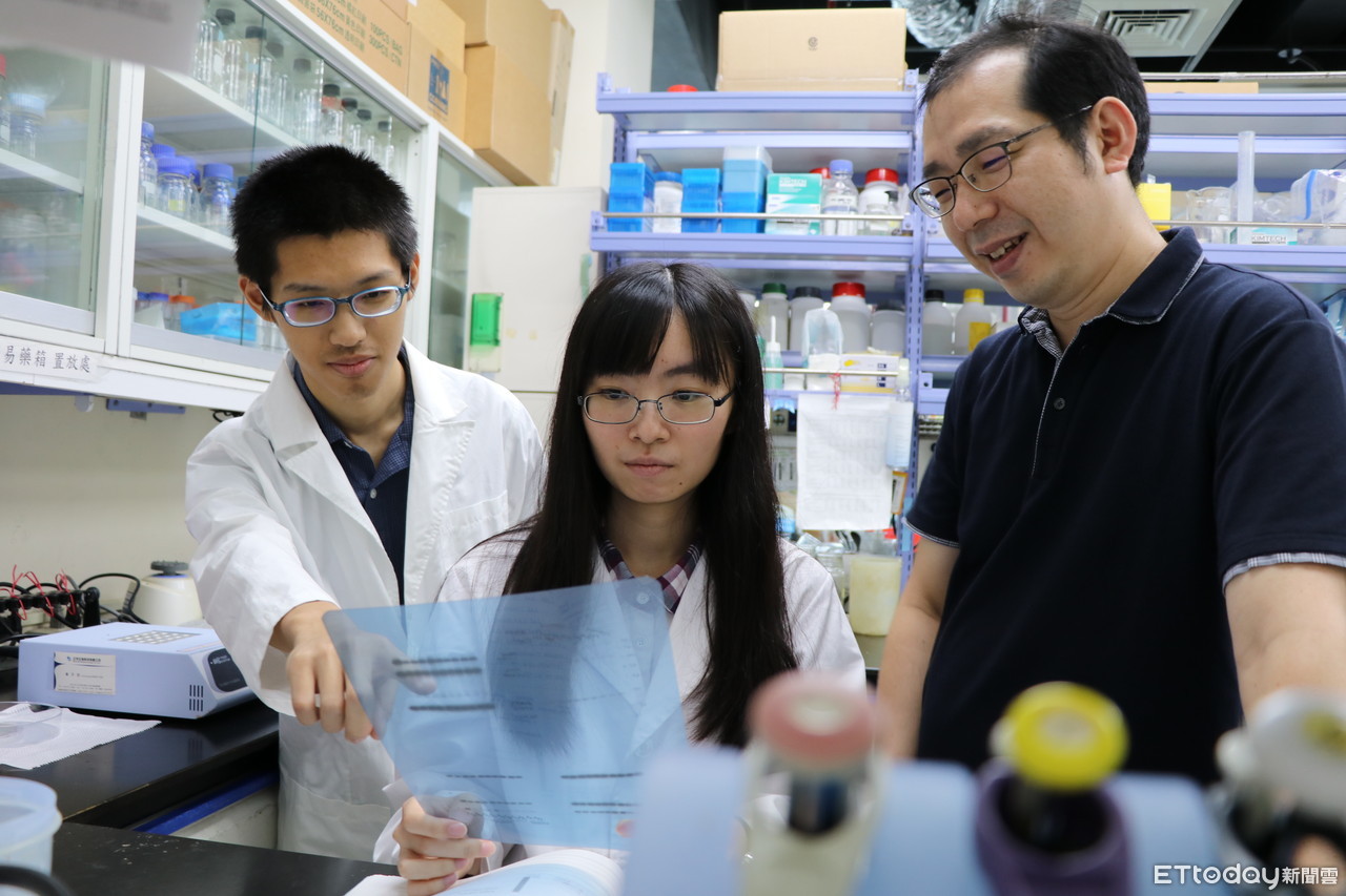 ▲論文第一作者畢文潔(中)、通訊作者陳威儀副教授與第四作者醫學系二年級林家瑋(左)。(圖/陽明大學提供)