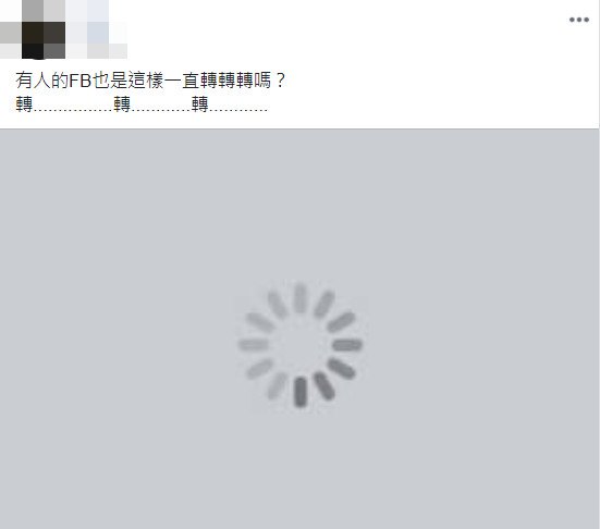 有網友在臉書社團「爆廢公社」PO文詢問,「有人的FB也是這樣一直轉轉轉嗎?」引起不少網人瞬間抱怨,「我也是」、「+1」、「我的也壞掉了」、「我還以為我網路掛了」、「早上到下午都這樣」、「更新完才這樣」、「我的是關機重新開機就好了」。