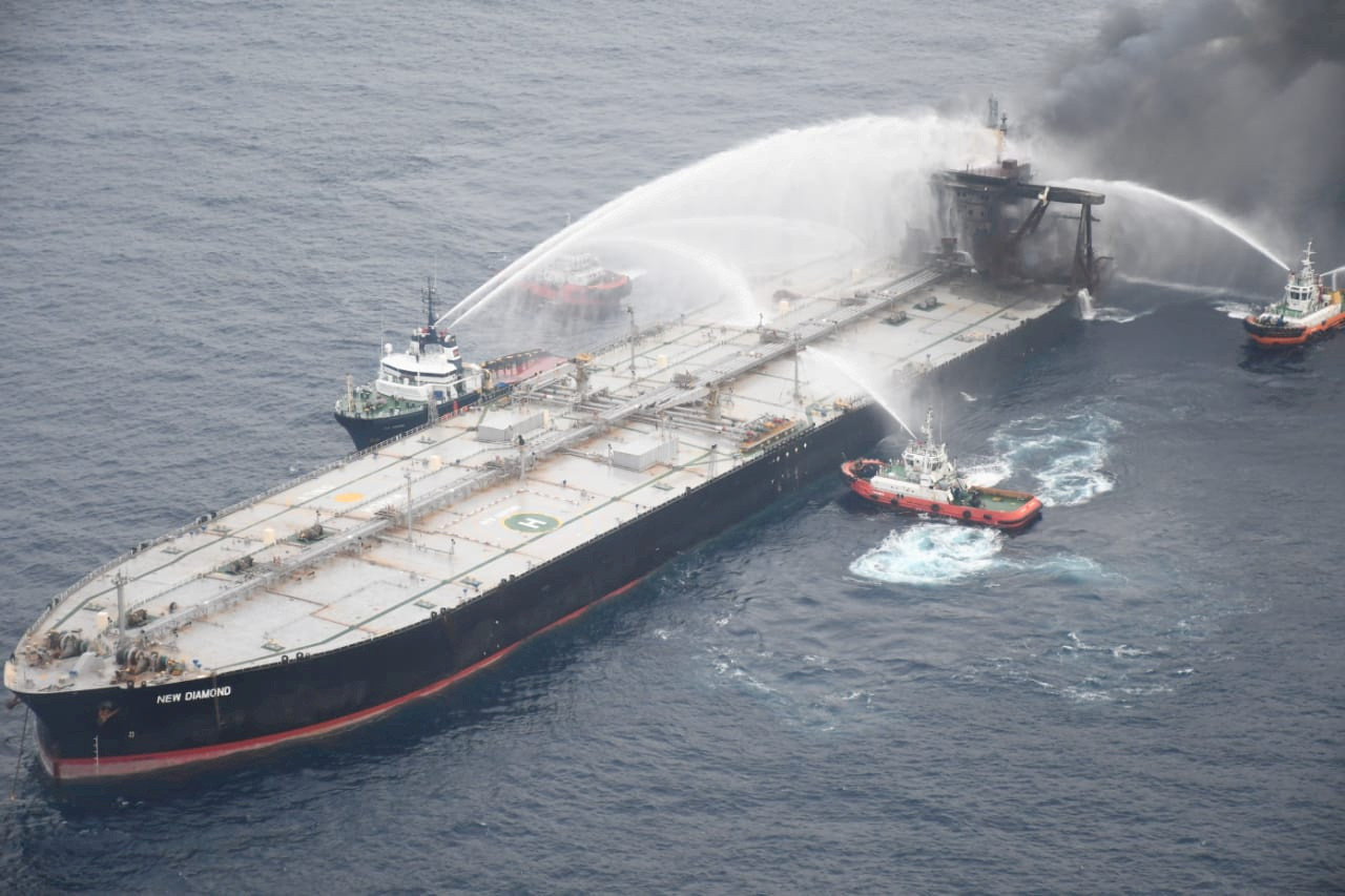 船齡20年的懸掛巴拿馬旗新鑽石號超大型油輪於9月3日失火,火災其後已撲滅,未波及船上載運的原油。但斯里蘭卡海軍本週將新鑽石號拖往更遠外海後,發現海面上遺留很長一道燃油。