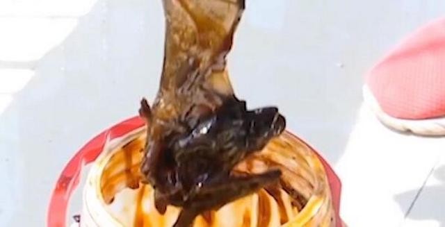 綜合陸媒報導,郭男早前購買由海天味業生產的6公斤裝海天上等蠔油,吃了多月相安無事,然而最近母親在煮飯時,發現舀蠔油舀不動,一挖桶底竟發現有「鳥」。她後來帶同證物到賣場討說法,這才驚覺該「鳥」其實是一隻蝙蝠屍體。