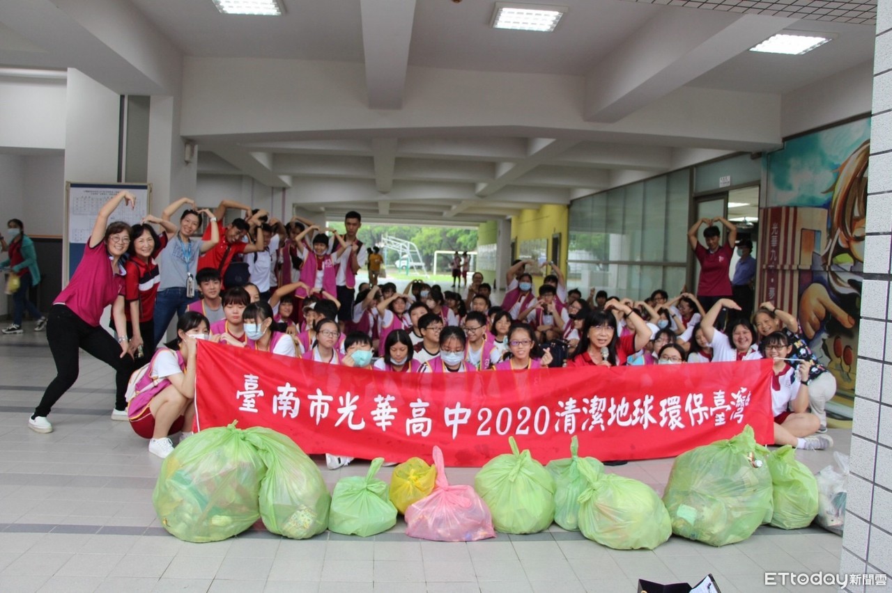 ▲光華高中響應2020年世界清潔日,號召師生90人,從清潔學校開始,進而走入社區,為地球盡一份心力。(圖/記者林悅翻攝,下同)