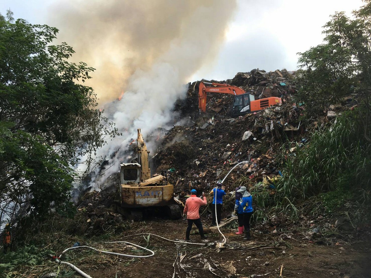 員林市公所指出.阿寶坑垃圾場今(14)日上午6時40分左右,巡場人員發現有冒白煙的現象,當下便立即通報清潔隊部的管制室,清潔隊在第一時間聯繫消防隊前來滅火,並出動清潔隊的水車及開口契約廠商2台怪手到場支援。