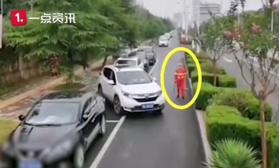 ▲清潔阿姨受不了,主動幫忙路人停車。(圖/翻攝自沸點視頻,下同)