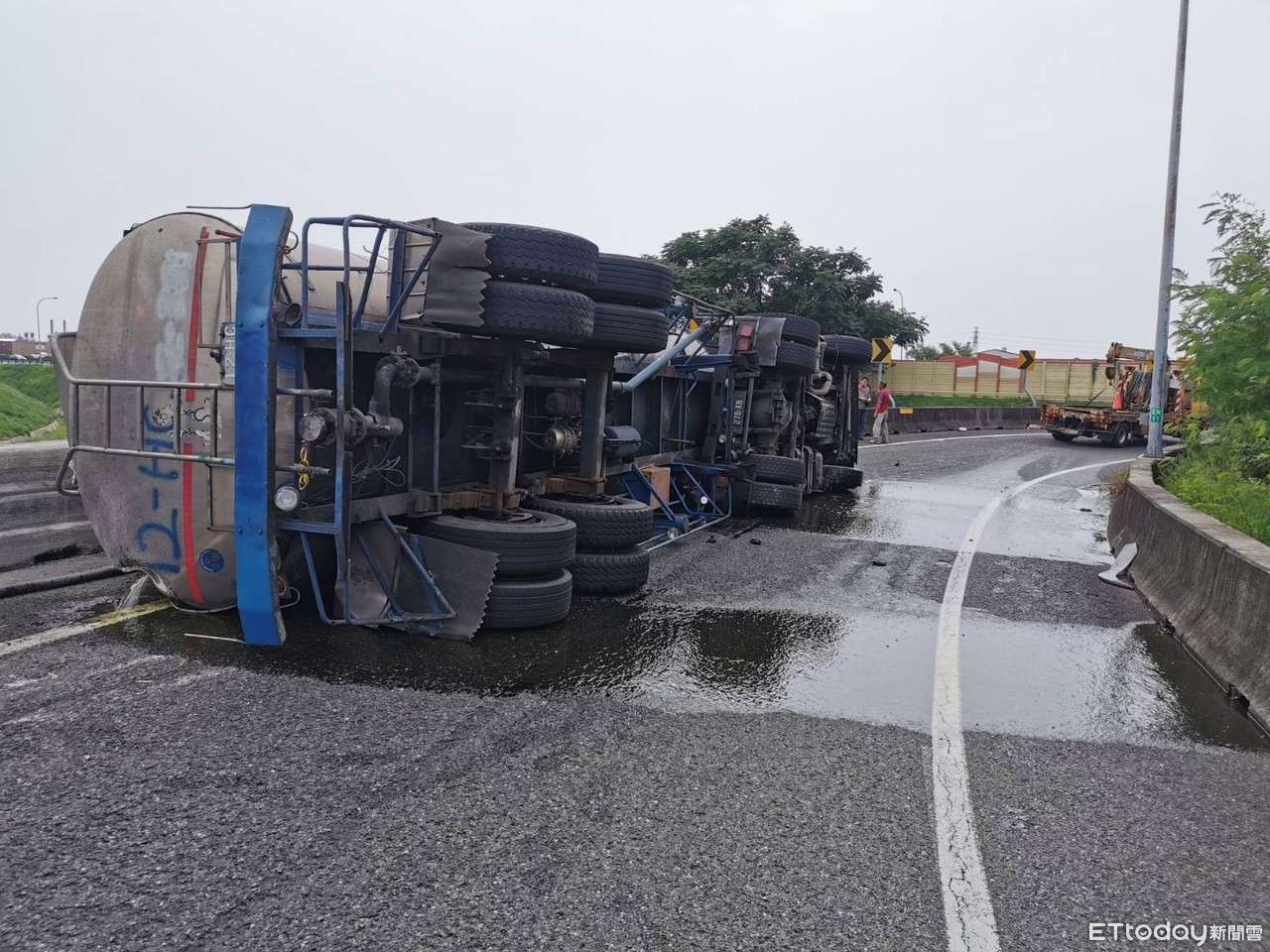 ▲台南台86線快速道路發生油槽車翻覆事故。(圖/記者林悅翻攝)