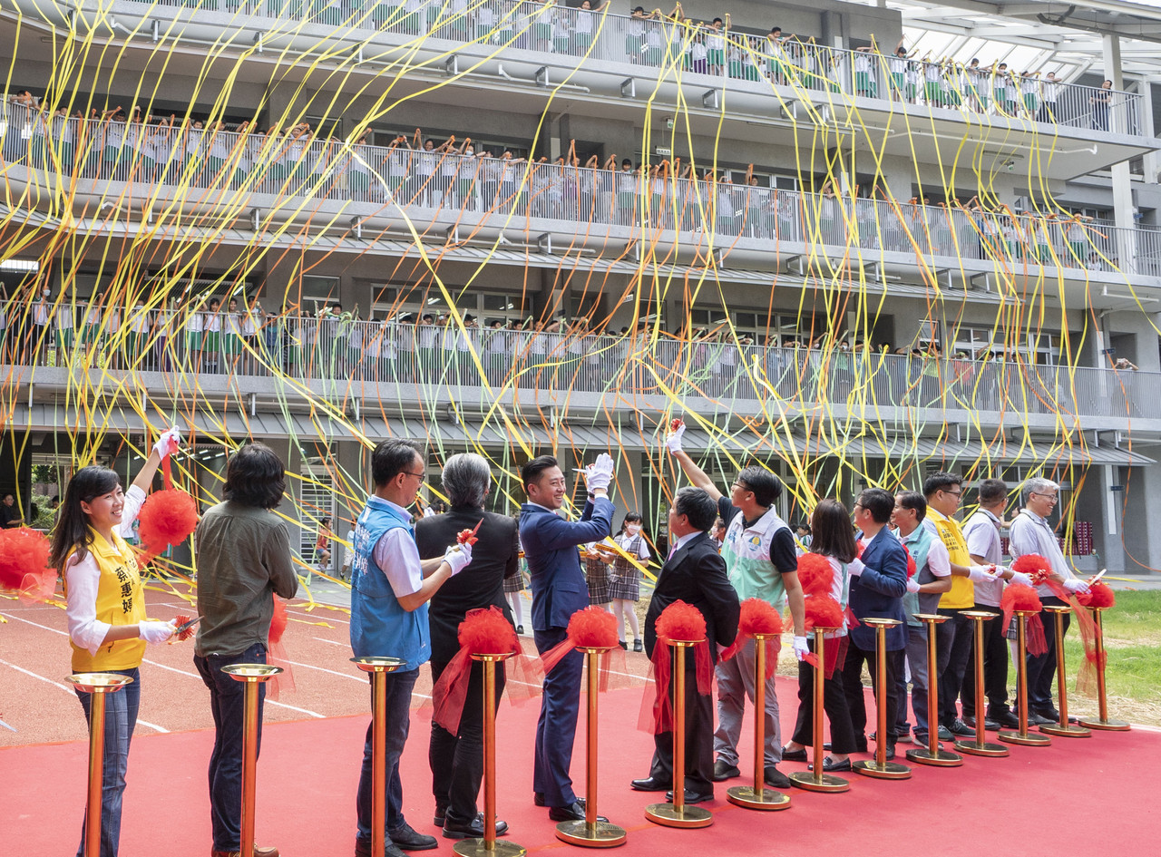 「孩子們,我們正在為你們的未來努力!」三民國小上午舉行復興樓啟用典禮,林智堅親自到場祝賀、參與剪彩儀式,當彩球剪下,站在復興樓上的孩子也拋出手中的彩帶,黃、橘亮麗的彩帶飛揚空中,大家臉上洋溢著笑容,一起迎接、體驗嶄新的校園。隨後林智堅市長參觀復興樓,並與學生親切互動,還有許多孩子從溜滑梯滑下來開心迎接市長到來,感受全新的校園空間。