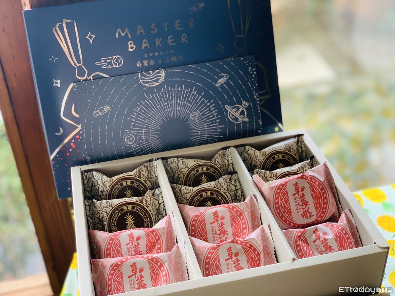 2010年世界麵包冠軍吳寶春今年攜手2018年冠軍王鵬傑,打造中秋限定「雙冠王」禮盒,內含經典的傳統酸甜鳳梨酥,以及小朋友會愛的草莓酥,家裡有大人、小孩都可以一次滿足,只在家樂福獨賣。另外還有這盒獨賣款,是由王鵬傑一手打造的邪惡小芋頭禮盒,將芋頭酥打造成芋頭外型,裡頭包裹著麻糬、鹹蛋黃,全台限量只有1000盒,。