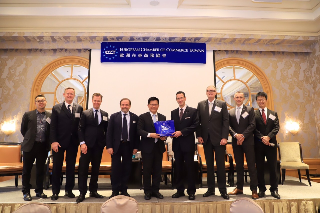 林佳龍昨日中午獲邀出席「歐洲在台商務協會」午餐會,以「智慧運輸與COVID-19下之觀光布局與展望」為題進行專題演講,並與台灣賓士總裁Michael Grewe、博世集團台灣區執行董事Jan Hollmann、台灣保時捷總裁Mathias Busse、台北西華飯店總經理Achim Hake、飛亞旅行社創辦人Michael Wu、駐台辦事處代表、外商在台公司高階主管等70位成員交流座談。