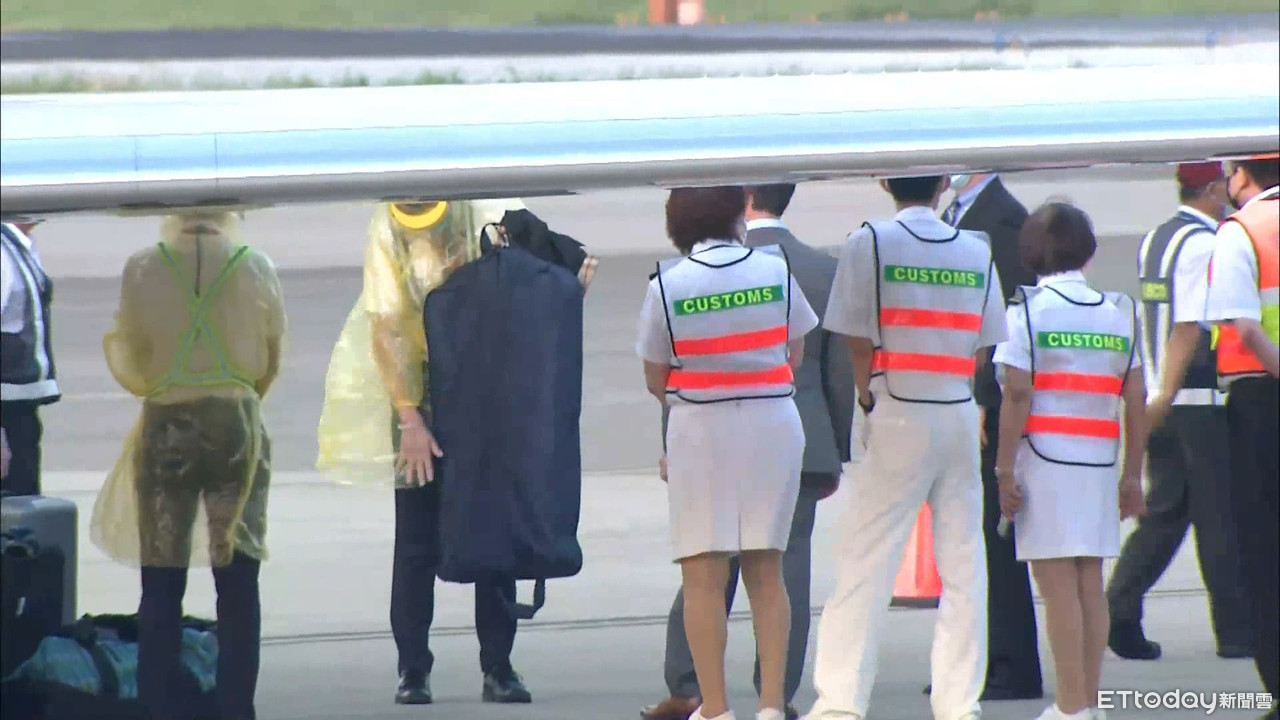 機場防疫工作人員在飛機落地前已準備好隨時待命。美國在台協會處長酈英傑、外交部次長曾厚仁等已提前等待接機,在柯拉克下機時全程戴上口罩,並且用擊肘的方式向對方打招呼。