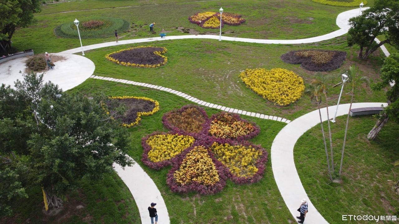 ▲「心環原」藉由各種色葉灌木,透過複層次植栽方式與排列,形成心型、圓形等組合,呈現五股垃圾山回歸原初樣貌的意涵。