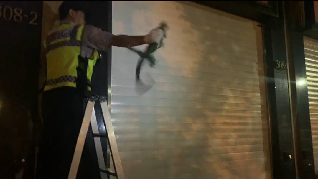 這起事件發生在16日晚間8點多,根據了解,當時英勇的義警廖建龍自告奮勇戴手套抓綠鬣蜥,他先爬上簡易梯,並由其他員警吸引綠鬣蜥注意,再由他快速的抓起綠鬣蜥放入麻布袋中,但過程中綠鬣蜥受到驚嚇掙扎甩動尾巴,還用尾巴捲上義警的手臂,此時不小心將義警的手臂劃傷,留下一道血痕,所幸包紮後,傷口並無大礙,警方也呼籲民眾不要棄養綠鬣蜥,以免類似的狀況再次發生。